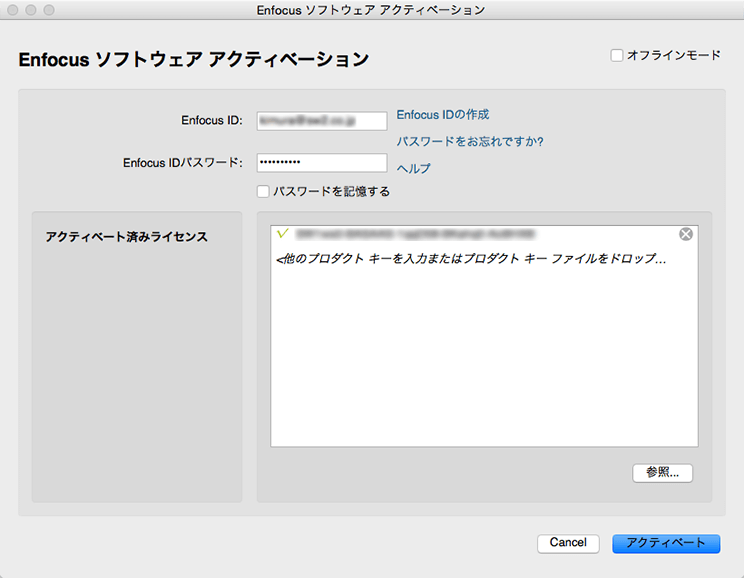 5. プロダクトキーを入力もしくは、プロダクトキーファイルをドロップしましたら、「アクティベート」ボタンをクリックして次へ進みます。
